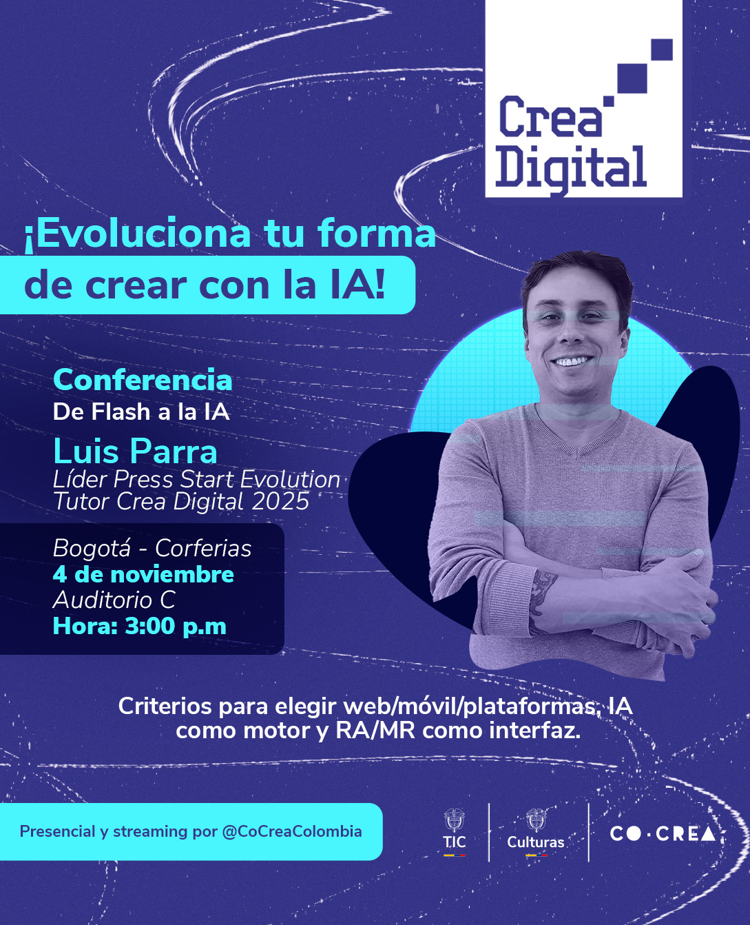En 2025, Crea Digital regresó con más fuerza y nuevas oportunidades para el ecosistema creativo y digital del país a través de dos líneas complementarias. La primera, una convocatoria pública con recursos económicos para impulsar proyectos que fortalezcan la sostenibilidad y la competitividad en cuatro categorías: series animadas, videojuegos, narrativas transmedia y grupos étnicos.