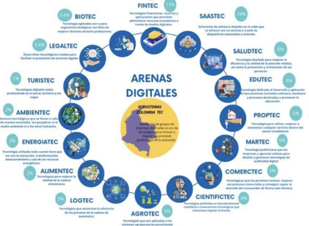 - Promover la creación, fortalecimiento, consolidación y sostenibilidad de por lo menos 10 ecosistemas de innovación digital en Colombia, abarcando de manera estratégica y pertinente arenas digitales, y actores a través de nuestro catálogo de servicios CTeI.