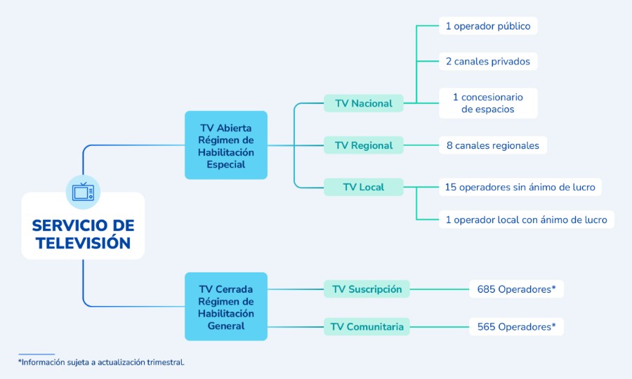 La Ley 1978 de 2019 no cambia directamente esta definición, pero incluye en la noción de provisión de redes y servicios de telecomunicaciones el servicio de televisión, el cual de conformidad con lo dispuesto en los artículos 1 y 10 de la Ley 1341 de 2009, modificados por los artículos 2 y 7 de la mencionada Ley se habilita de manera general, lo cual se formaliza con la incorporación en el Registro Único de TIC que está a cargo del Ministerio de Tecnologías de la Información y las Comunicaciones.