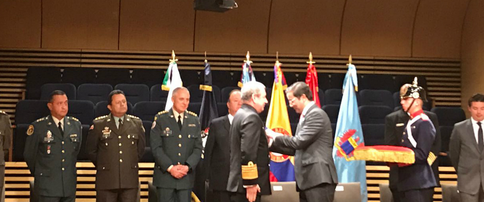 Finalmente, entregó la Medalla al Mérito al Brigadier General Óscar Alberto Quintero González, Jefe de Comunicaciones y Tecnologías de la Información del Comando General de las Fuerzas Militares, por su trabajo como líder TIC en el sector defensa.