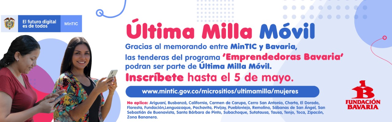 Gracias al memorando de entendimiento firmado entre el Ministerio TIC y Bavaria se amplía la convocatoria de la iniciativa Última Milla Móvil a las mujeres que hacen parte del programa de "Emprendedoras Bavaria".