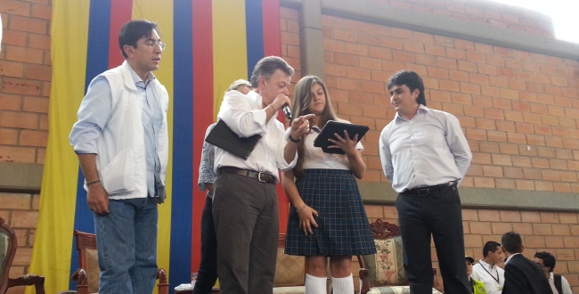 Presidente Santos entrega 1.080 tabletas para educar a niños de Hispania, Antioquia