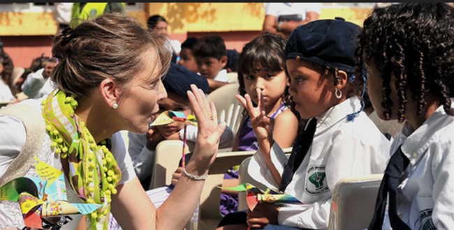 Impulsando el desarrollo de las regiones con herramientas tecnológicas para los niños, la Primera Dama de Colombia, María Clemencia Rodríguez de Santos; el Ministro TIC, Diego Molano Vega y la Viceministra TIC, María Carolina Hoyos Turbay, entregaon este jueves 14 de febrero más de 1.600 equipos que contribuirán con la formación de los pequeños, en tres municipios de Antioquia