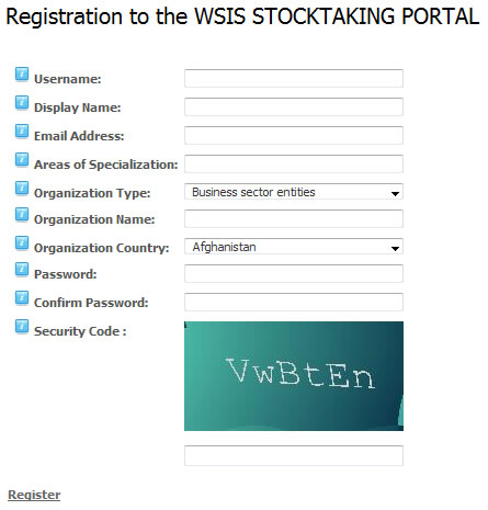 Ingresar al sitio Web http://groups.itu.int/stocktaking/HOME.aspx y hacer clic en [REGISTER] vínculo ubicado en lado superior derecho.