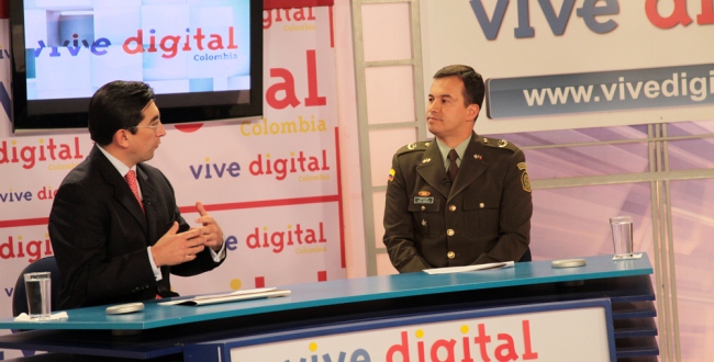 Bogotá, sábado 22 de julio de 2011. El programa Vive Digital panel de expertos, es conducido por el Ministro TIC, Diego Molano Vega y en esta oportunidad contará con la participación de expertos en telecomunicaciones: el Teniente Coronel Jairo Gordillo, Jefe de la Oficina de Telemática de la Policía Nacional; Erasmo Rojas, Director para Latinoamérica y el Caribe de 4G Américas, y Sebastián Cabello, Director de Política Pública de GSM Association.