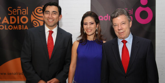 En la foto de izquierda a derecha: El Ministro TIC, Diego Molano Vega, la Gerente General de Señal Colombia, Diana Celis y el Presidente de la República, Juan Manuel Santos.