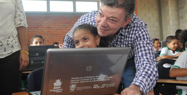 El Presidente Juan Manuel Santos entregó computadores a través del programa Computadores para Educar en Barranquilla