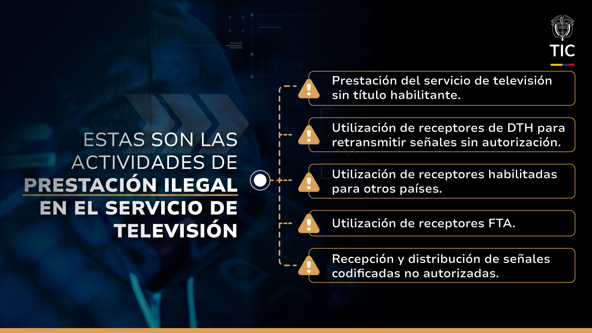 Ante la presencia de alguna de estas conductas, el Ministerio de Tecnologías de la Información y las Comunicaciones procederá a suspenderlo y a decomisar los equipos, sin perjuicio de las sanciones de orden civil, administrativo o penal a que hubiere lugar (Reglamentado por el Acuerdo CNTV 04 de 2004).