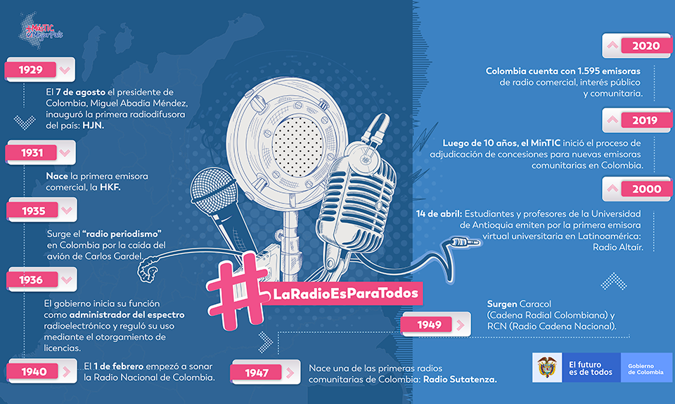 El Gobierno colombiano se une a la celebración del Día Mundial de la Radio, impulsado por la ONU a través de la Unesco, pues considera que es un medio de comunicación único para promover la diversidad. Según el organismo multilateral, la radio sigue siendo el canal más usado en todo el mundo, lo que le da capacidad de llegar al mayor número de público posible.