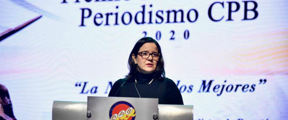 «Respetada Dra. Gloria Vallejo, presidenta del Círculo de Periodistas de Bogotá; señores miembros del Jurado de los 'Premios del CPB 2020'; señores periodistas asistentes, y televidentes que siguen esta transmisión… Buenas noches…