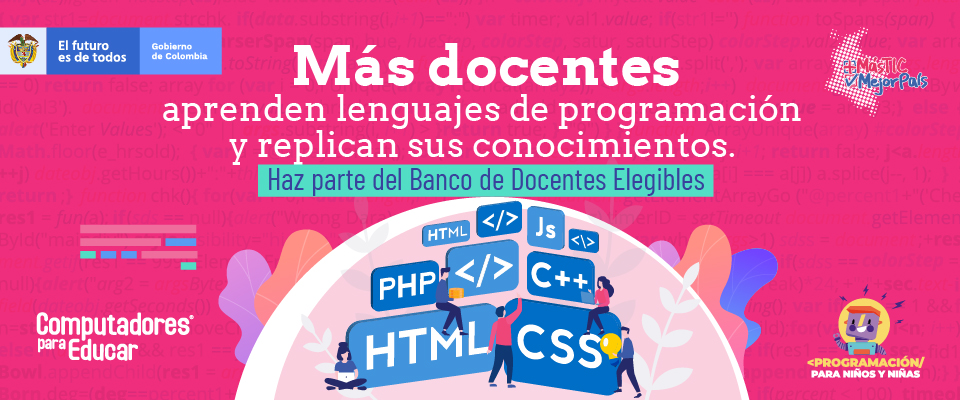 Con el fin de capacitarlos en pensamiento crítico y computacional, creatividad y en resolución de problemas para ampliar sus conocimientos frente a las nuevas tecnologías, el Ministerio TIC, Computadores para Educar, el Ministerio de Educación Nacional y otros aliados, se unieron para abrir la convocatoria de Banco de Elegibles de docentes.
