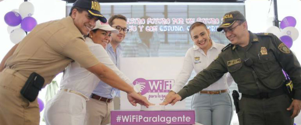 El ministro (e) de las TIC’s, Juan Sebastián Rozo, junto con Yolanda Wong, alcaldesa (e) de Cartagena y miembros de la Policía y Armada Nacional, entregaron 5 nuevas zonas de Wi-Fi gratis que funcionarán en las playas de Bocagrande