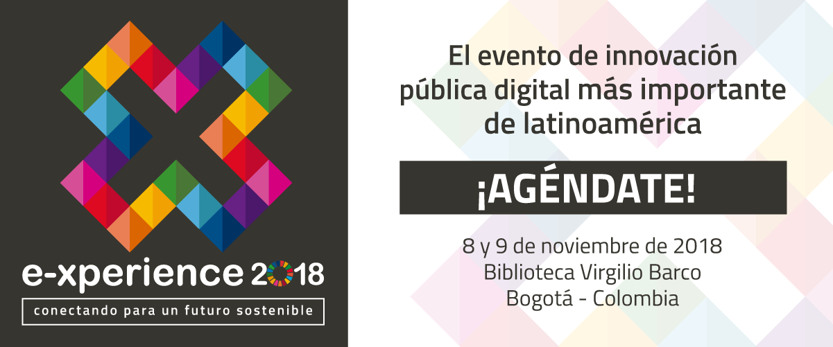 Este 8 y 9 de noviembre en la Biblioteca Virgilio Barco de Bogotá se realizará el e-xperience 2018, el evento de innovación pública en Latinoamérica que reunirá a reconocidos expertos y en el que participarán servidores públicos, académicos, representantes de la industria de TI, emprendedores y a la sociedad civil para compartir las últimas tendencias en innovación pública digital y generar espacios de colaboración y conexión con otros actores.