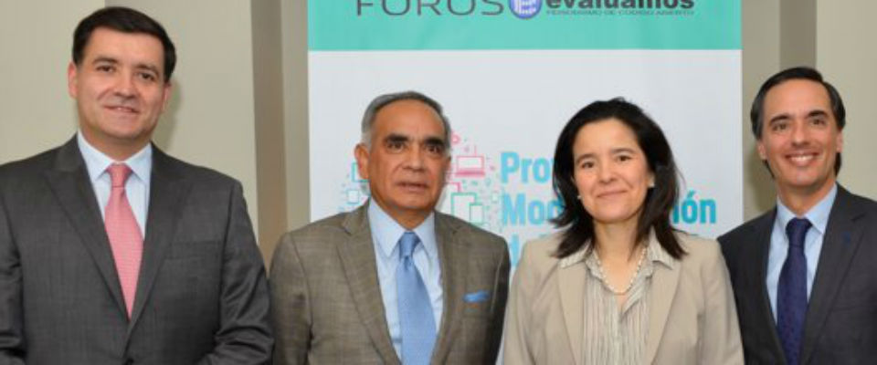 Una nueva edición de Foros Evaluamos contó con la participación de Sylvia Constaín (centro), ministra de las Tecnologías de la Información y las Comunicaciones, para explicar el proyecto de Ley de Modernización de las TIC. La jornada contó con la presencia de 45 líderes del sector, quienes debatieron y opinaron sobre la iniciativa. Junto a la Ministra, Juan Pablo Rincón, vp. Huawei Colombia; Orlando Rojas; dir. Foros Evaluamos y Alfonso Gómez Palacio; vp. Norte de Latinoamérica de Telefónica.