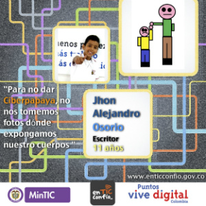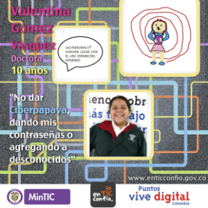 El evento inició con una videoconferencia, presidida por Vanessa Arroyave, Coordinadora de En TIC Confío, quien explicó a los niños y administradores de los Puntos, cómo cuidarse de la 'ciberdependencia' y del 'ciberacoso', entre otros riesgos de la red, y cómo tener 'cibercuidado' y evitar la 'ciberpapaya'.