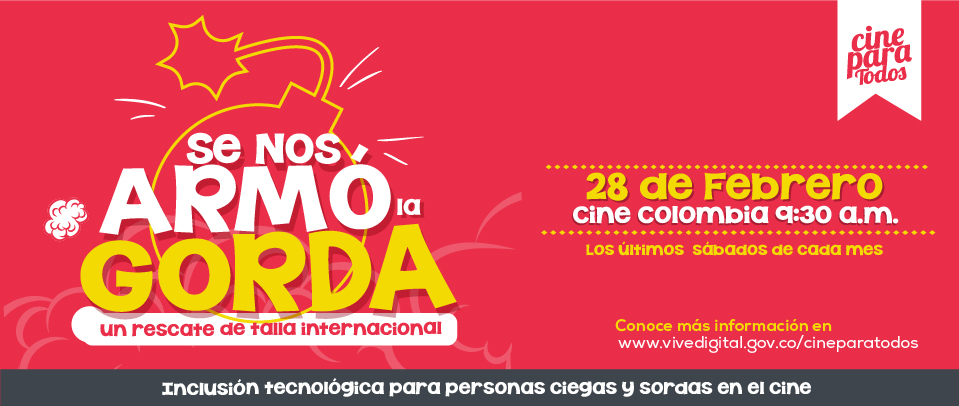 El próximo 28 de febrero el Ministerio de las TIC reiniciará las actividades del ciclo de 'Cine Para Todos' dirigido a personas con discapacidad visual o auditiva y sus familiares, esta vez con el estreno de la película colombiana ´Se nos armó la gorda´, una divertida comedia protagonizada por la Gorda Fabiola y Polilla.