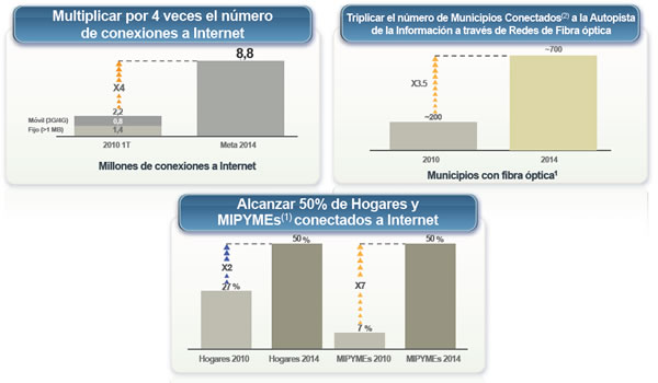 - Multiplicar por 4 el número de conexiones a Internet. Queremos llegar en el 2014 a 8.8 millones.