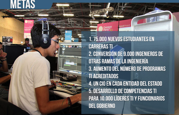 En las áreas de Gobierno incrementaremos la presencia de personal capacitado en TI. Fomentaremos que cada entidad del Estado tenga un jefe de tecnología (Chief Information Officer - CIO) y desarrollaremos competencias TI para 10.000 líderes TI y funcionarios del Gobierno.