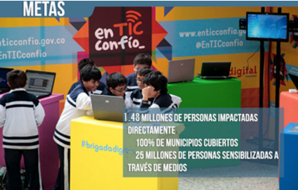 La estrategia del Programa En TIC Confío para el periodo 2014-2018 incluye la generación de más de 2.000 contenidos propios de prevención y promoción del uso seguro de Internet. El programa llegará alrededor de1.485.700 de personas directamente con campañas y conferencias de sensibilización en el 100% de los municipios de Colombia.