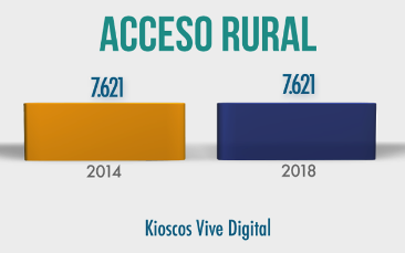 En materia de conectividad rural, continuaremos garantizando que todos los centros poblados de más de 100 habitantes tengan al menos un punto de acceso a Internet. Para lograr esto, mantendremos los 7.621 Kioscos Vive Digital incorporando modelos que garanticen su sostenibilidad en el tiempo, con la participación del sector privado, universidades y de otras entidades del sector público.
